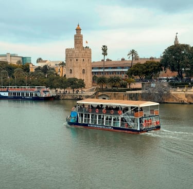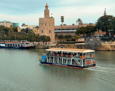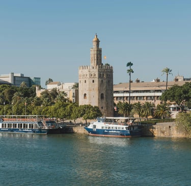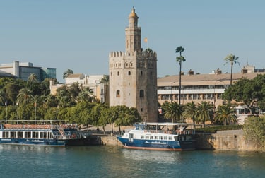 La tour que vous voyez sur la photo du dessus, est qui sera la dernière activité, c'est "La Torre del Oro" (la tour de l'Or), c'était à l'origine une tour défensive construite par les Musulmans pour contrôler l'accès au Guadalquivir.