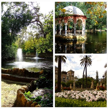Ci-dessus, des images du magnifique parc Maria Luisa. Ce parc a été léguée à Séville par Maria Luisa, d'où son nom. C'est un architecte-paysagiste français qui l'a ensuite aménagé dans un style français et andalou.
