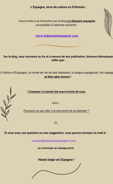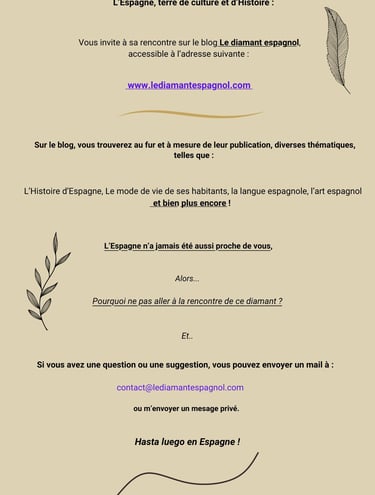 Je tiens à vous remercier pour votre fidélité, hier encore Le Diamant Espagnol n'était qu'un projet, et aujourd'hui, il compte déjà 10 articles !!!