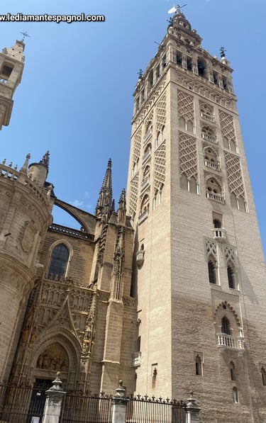 On finit avec l'un des monuments les plus connus de Séville, qui fait d'ailleurs sa renommée avec le palais de l''Alcázar je veux parler de la Giralda.